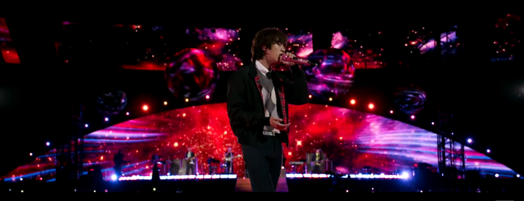 His iconic pink microphone and earplug accompanied his first solo stage, singing “The Astronaut”. A long-awaited yet surprise performance for all of us, especially ARMY. It must be quite a challenge for him to fly across the ocean and perform without his members, but this is the moment for him, and I know that he will do anything to leave us with great memories before he’s join the army.