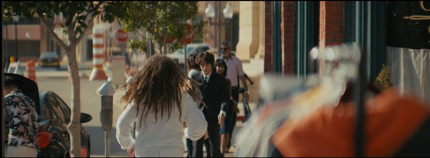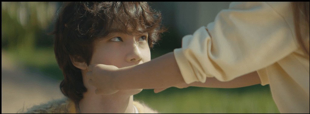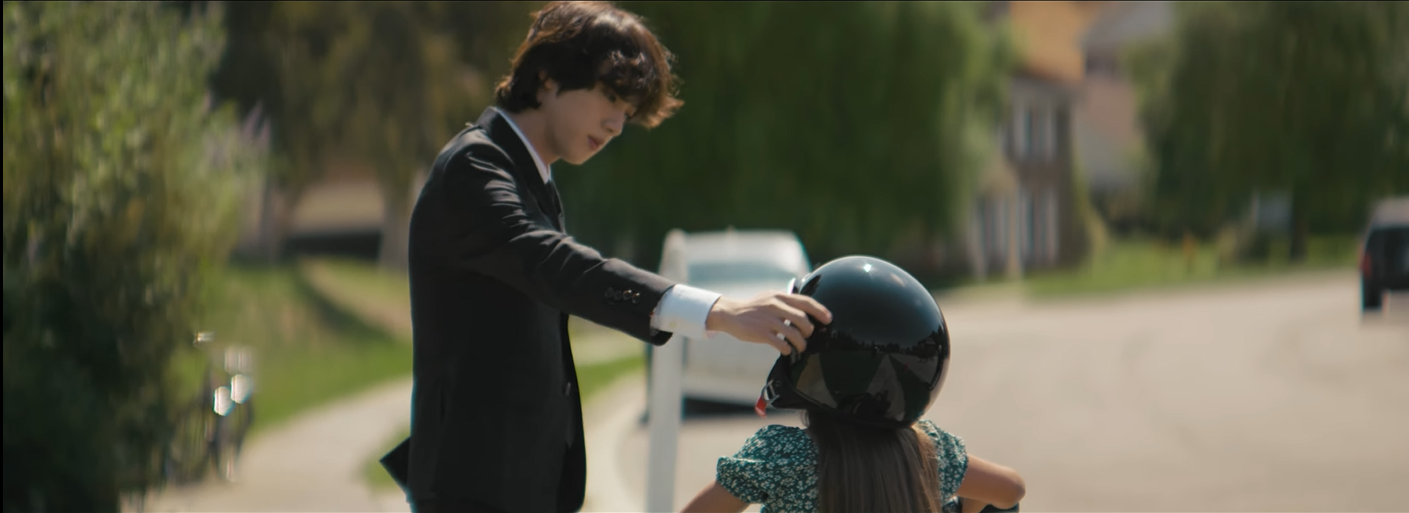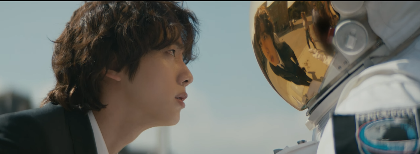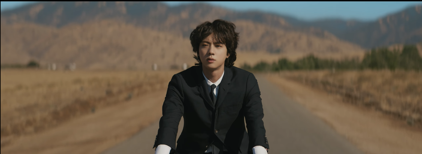 In the next scene, we got him, still in his room but getting ready and use a suit, taking a helmet that later he gave to the girl with the bicycle- that we all believe it’s the representation of us, ARMY. Honestly, because he is so good-looking, every screen capture was a success! Hahahaha, our World Wide Handsome it is!