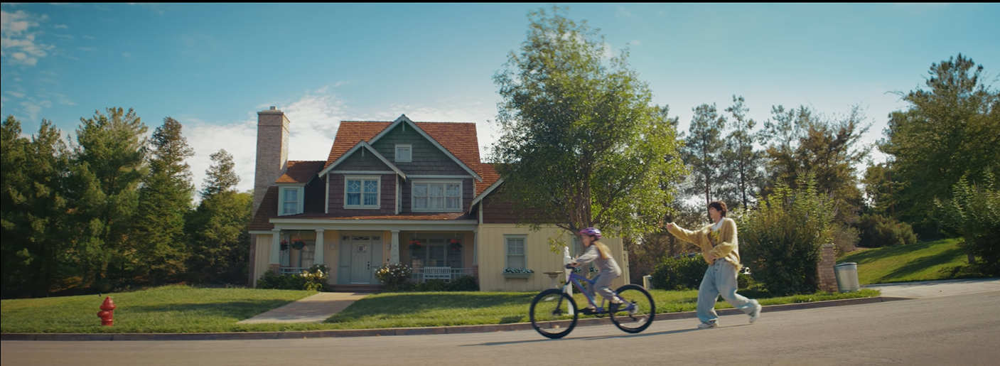 In the second chorus, he’s away again but this time with the bicycle, getting closer to the UFO thingy place.