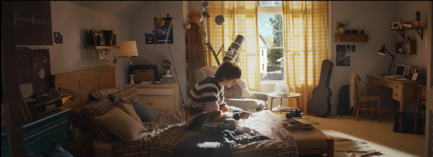 I interpret this scene as a depiction of what will he become – an astronaut, who will be gone for a while to do the job in outer space, but he will surely go back to us.