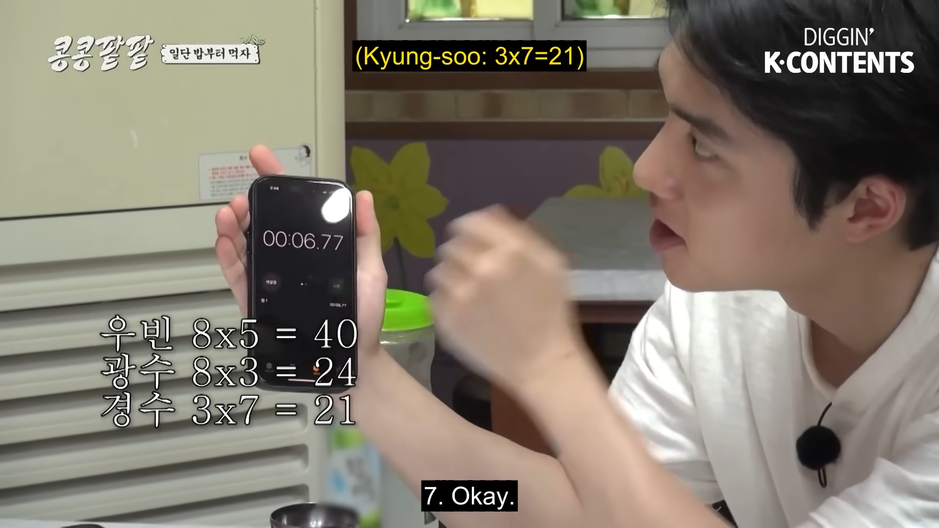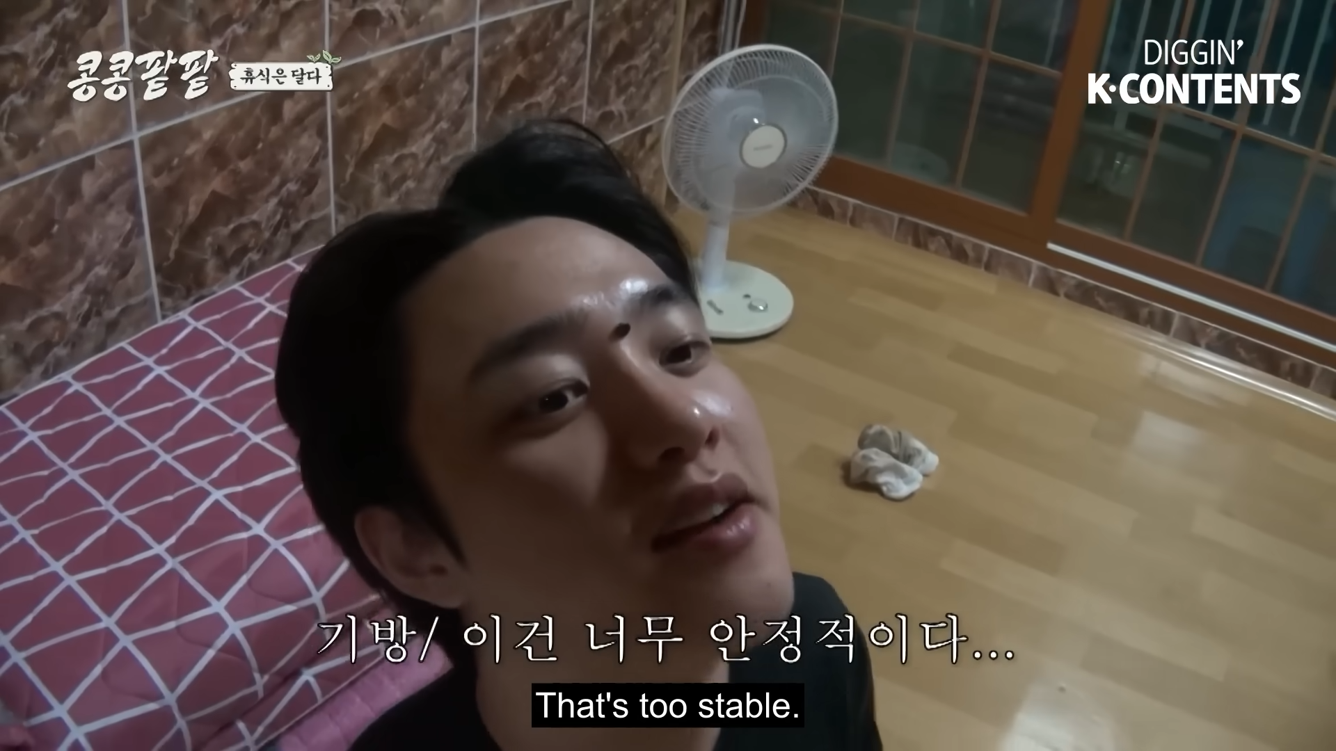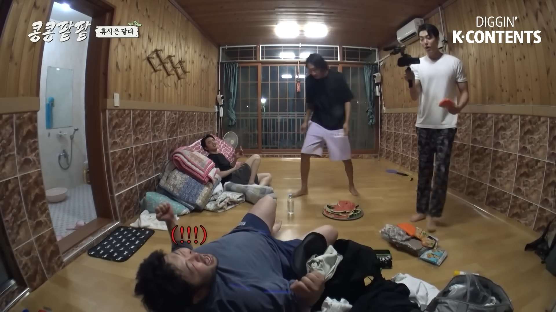 Since there were only 2 thick mattresses and 2 thin ones in the inn, they decided to play a game to decide who got the thick ones for sleep. The staff gave them watermelon as a night snack, which then turned into game tools. They have to spit out the seed onto their face! Hahahaha Kyungsoo managed to do that easily – even more than one! It’s def a skill, not merely luck hahaha. His success was then followed by Ki Bang with a bit of dramatic moves.