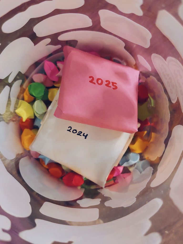 I kept the notes from previous years in the same jar but categorised them by year. This way, the notes won’t get mixed up and I’m ready for 2026!