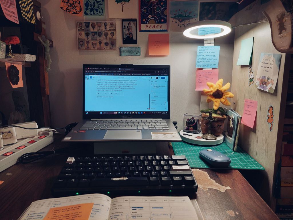 This must be kinda expected, since I mostly work from home. But I think the real question is not only where, but how do I spare time to read, right? — for those who might struggle with this, last year I wrote a little bit of tips on how to get back into reading [How I Make Time to Read in this Digital Age]. But in this blog post, I want to share a new strategy I’ve picked up for reading time.