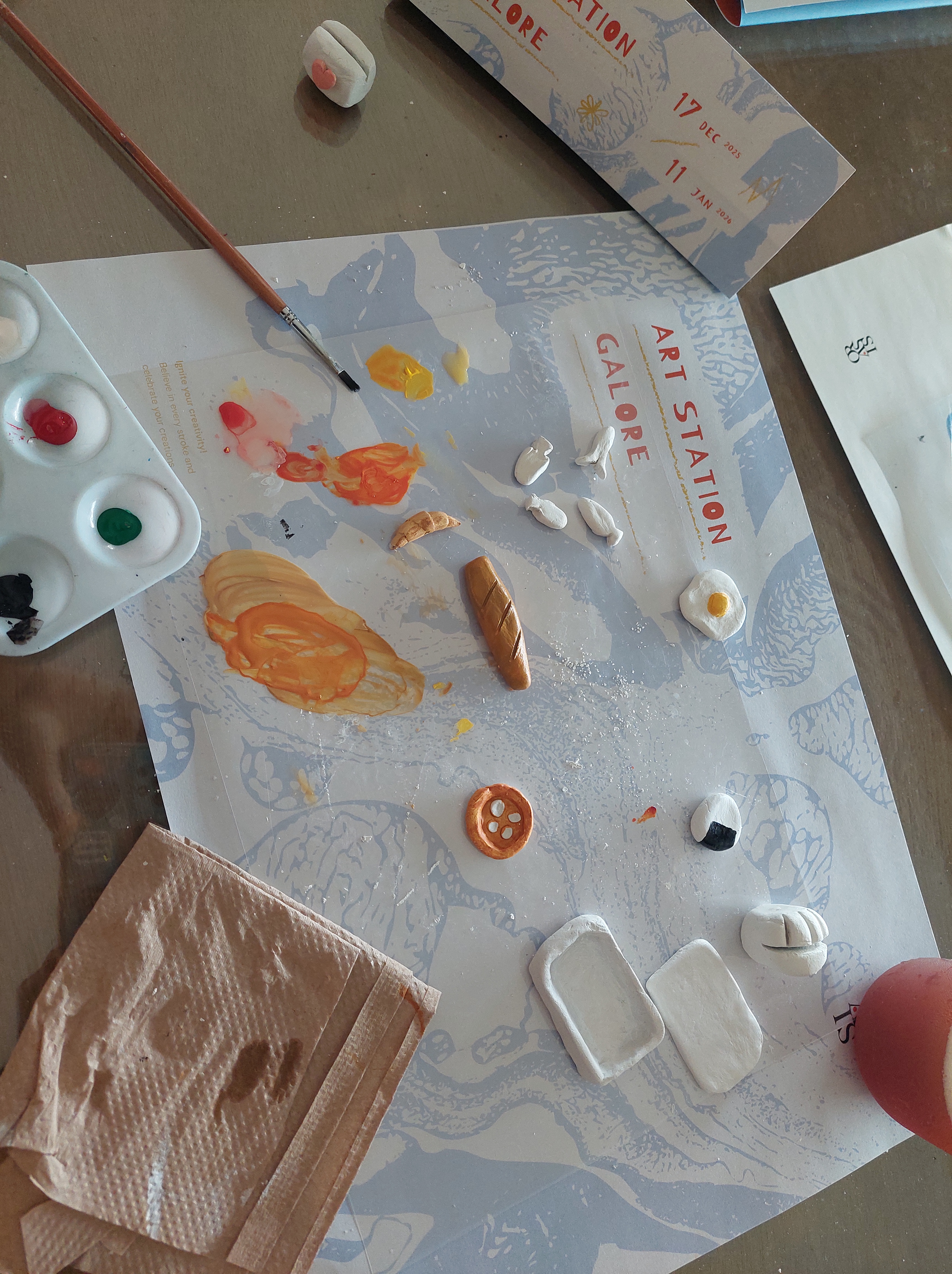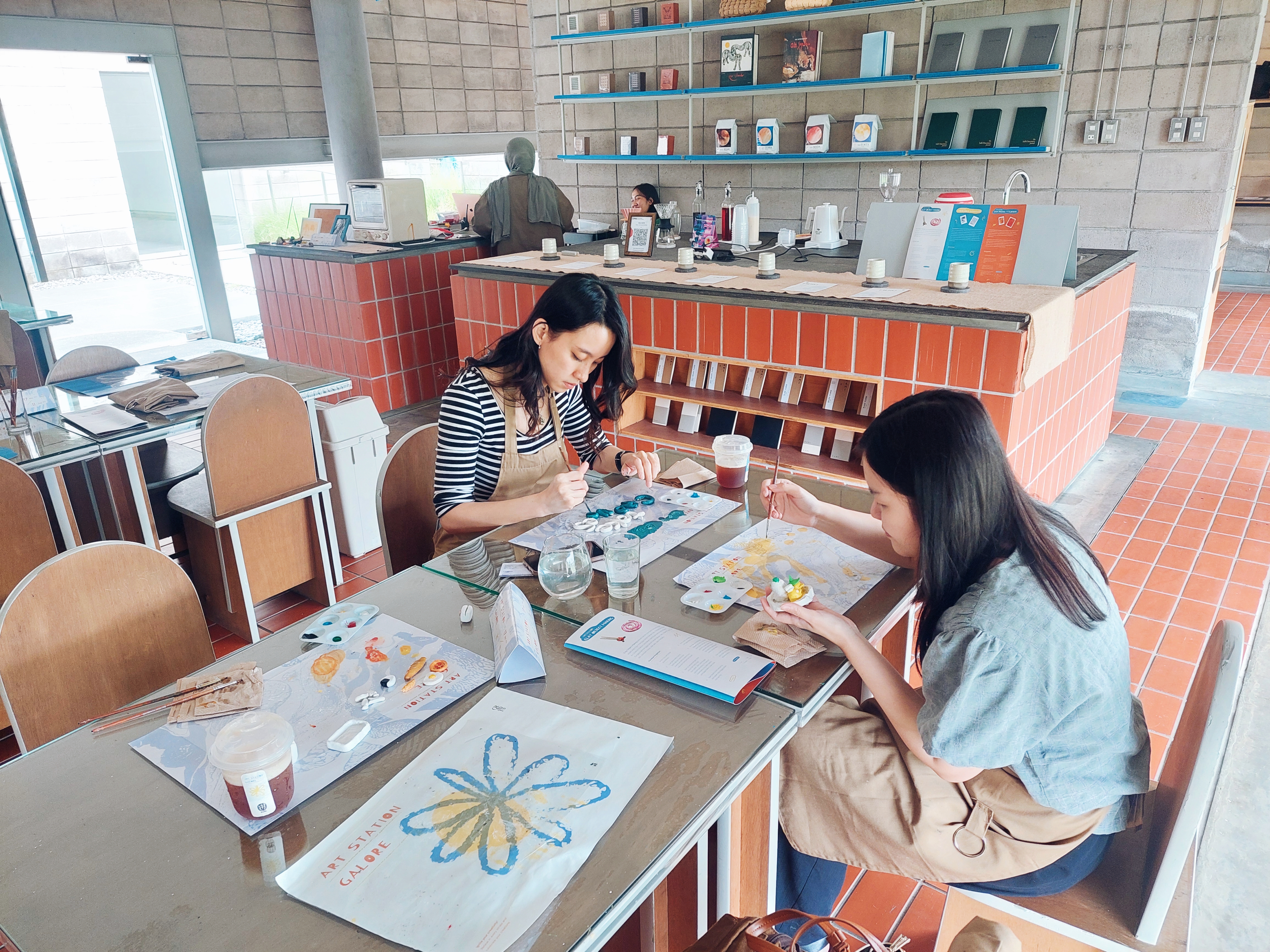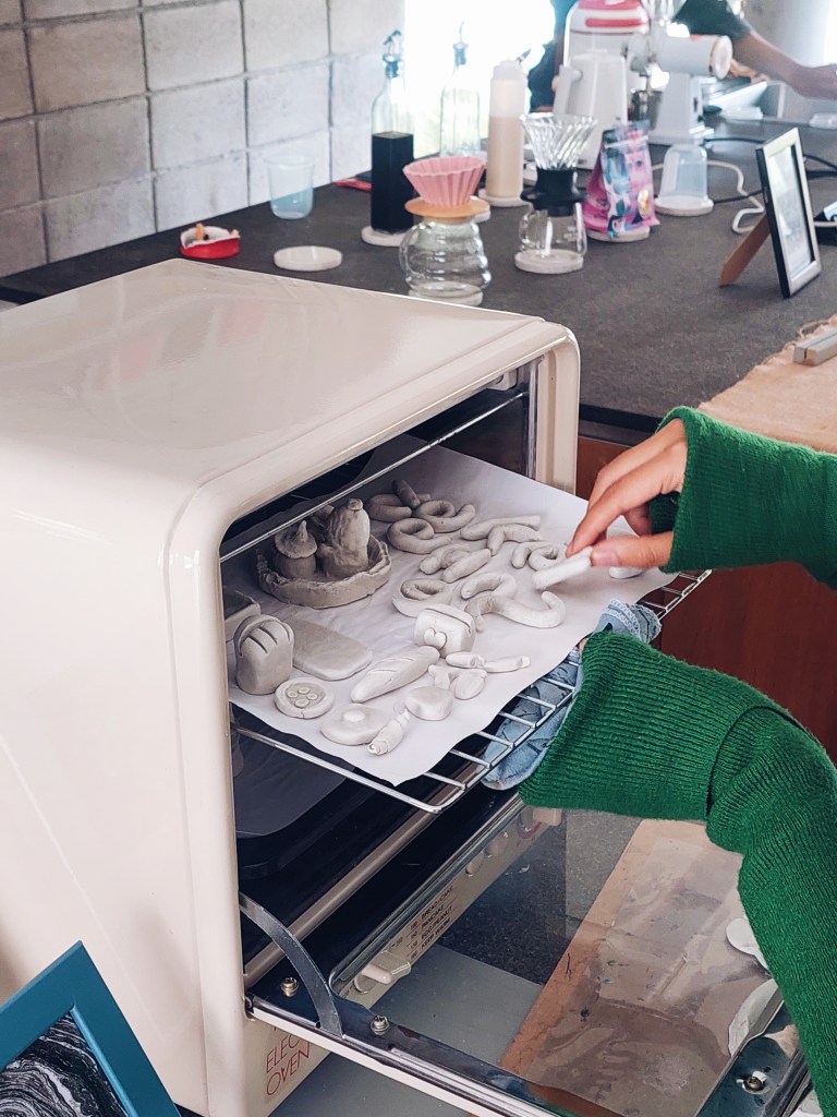 Nah, before the colouring it with acryclic paint, claynya itu kita berikan ke stafnya untuk dioven sebentar. Sebenarnya clay yang dipake itu air-dry clay, jadi gak perlu sampe dioven. Tapi kalau claynya masih terlalu basah bisa bikin catnya nantinya mengelupas dan cracking – and we wouldn’t want that.